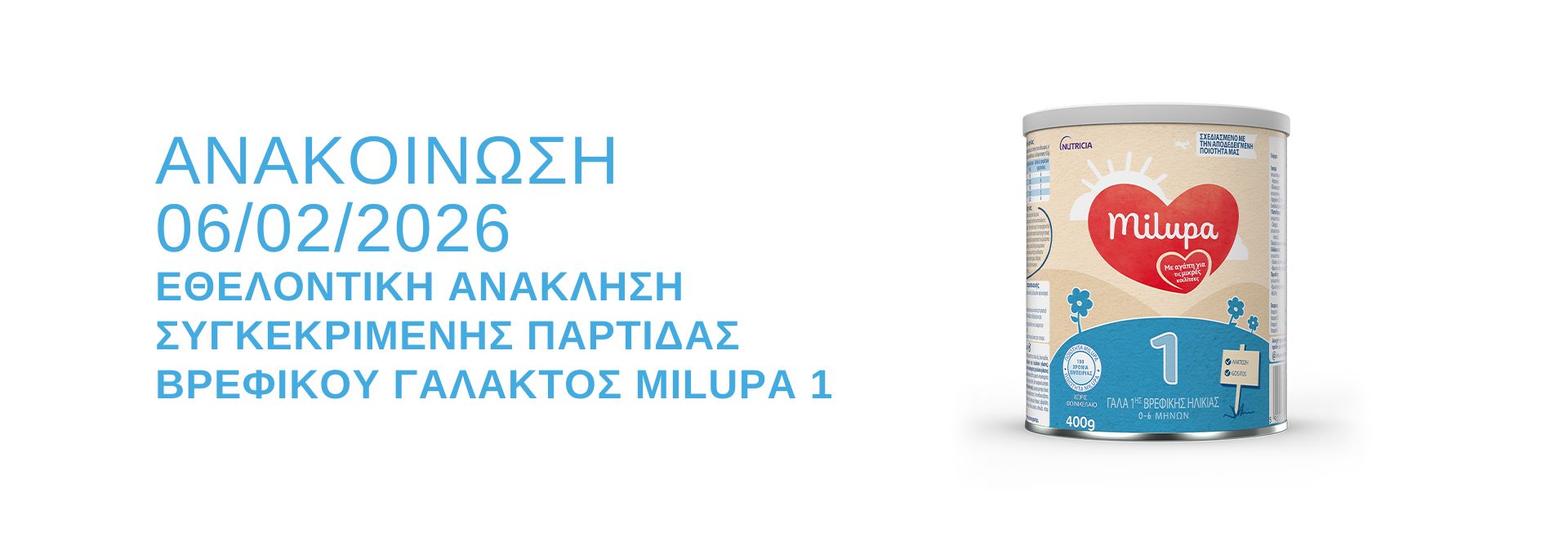 Με το νέο online κατάστημά μας, φέρνουμε όλα τα προϊόντα Milupa στην πόρτα σου! Επισκέψου σήμερα το νέο eshop «MY MILUPA SHOP» και ανακάλυψε όλα τα προϊόντα Milupa και τις μοναδικές προσφορές μας.